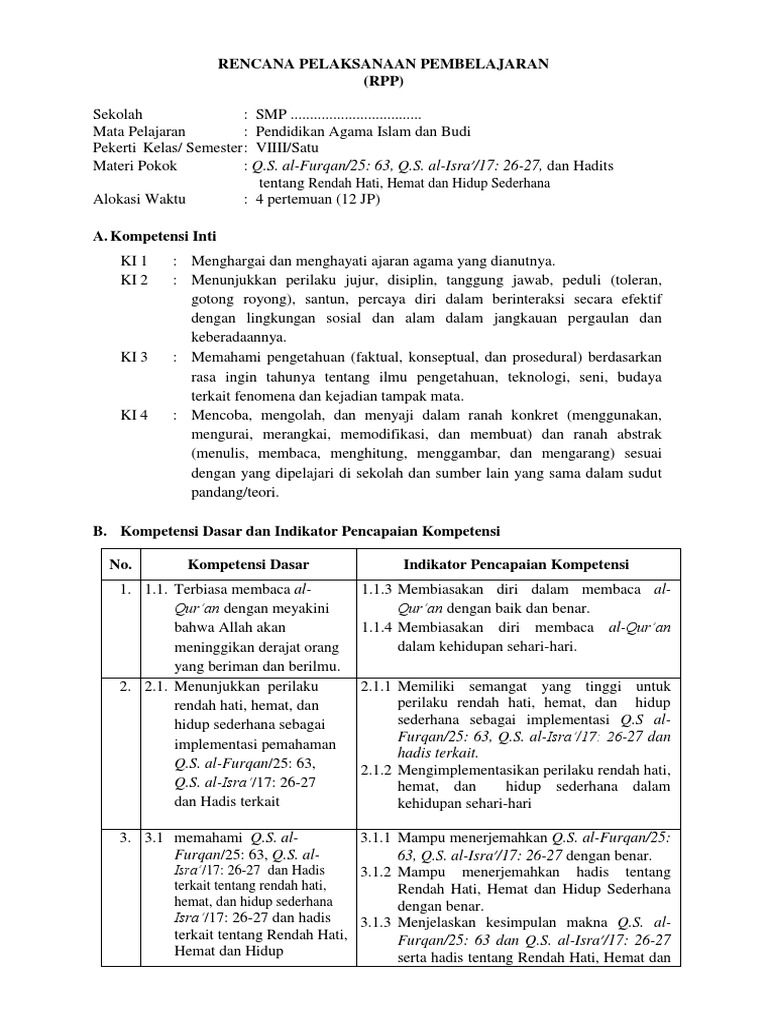 | Judul Surah: Pendidikan Agama Islam Kelas 8 Rendah Hati Hemat Dan Hidup Sederhana |